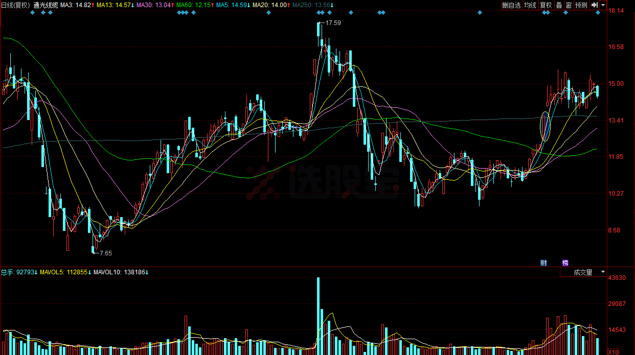 通光线缆:7月21日买入1129.50万,涨停板打板,次日十字星,高位震荡。